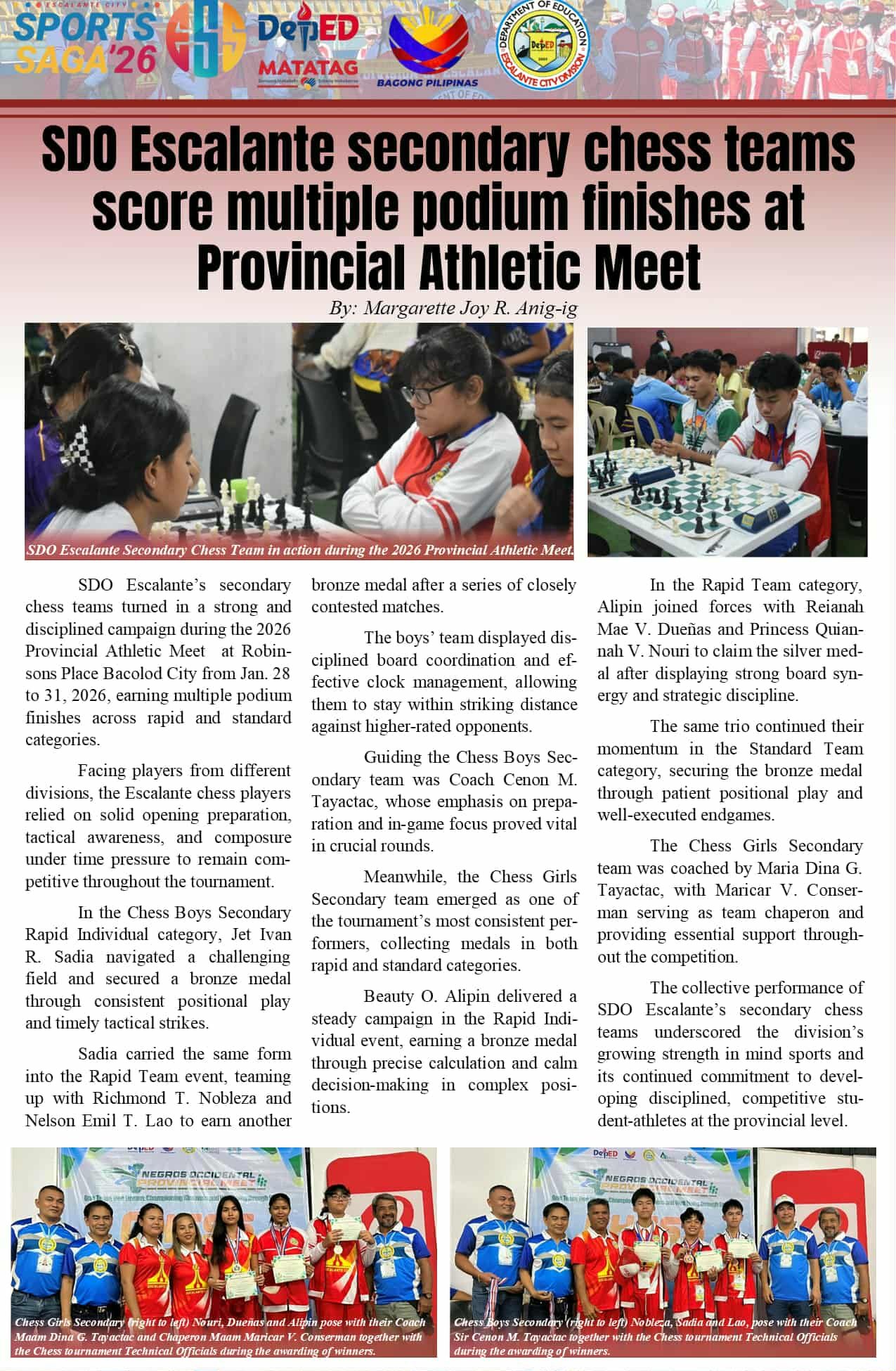 The Escalante City delegation joined thousands of student-athletes, coaches, and officials during the opening ceremony of the Provincial Schools Sports Athletic Association (PSSAA) Meet on January 27, 2026, at Panaad Park and Stadium in Bacolod City, Negros Occidental.